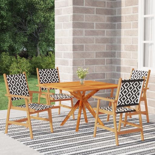 Dieses Garten-Essset bietet Ihnen einen perfekten Platz zum Entspannen und Genießen der Sonne in Ihrem Garten oder auf Ihrer Terrasse. Erstklassiges Material: Massives Akazienholz ist ein schönes Naturmaterial. Es ist ein tropisches Hartholz, das dicht, robust und langlebig ist.Robuste Tischplatte: Die robuste Tischplatte bietet reichlich Platz für Snacks, Obstkörbe, Dekoartikel und andere wichtige Sachen.Gittermuster: Dank des attraktiven Gittermusters sind die Terrassenstühle ein Blickfang in jedem Wohnbereich. Hinweis:Um die Lebensdauer deiner Gartenmöbel zu verlängern, empfehlen wir dir, sie mit einer wasserdichten Hülle zu schützen.