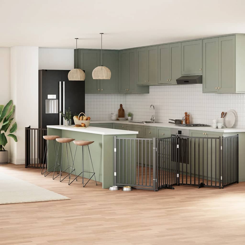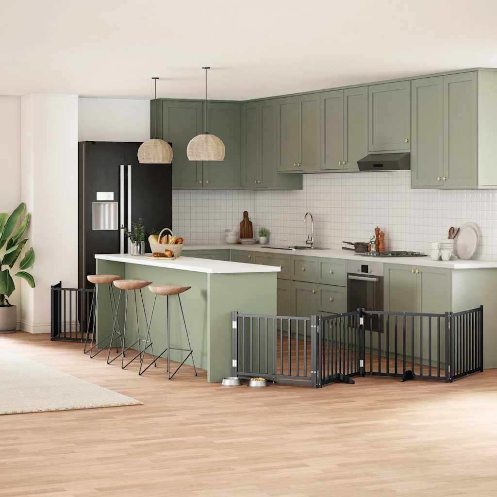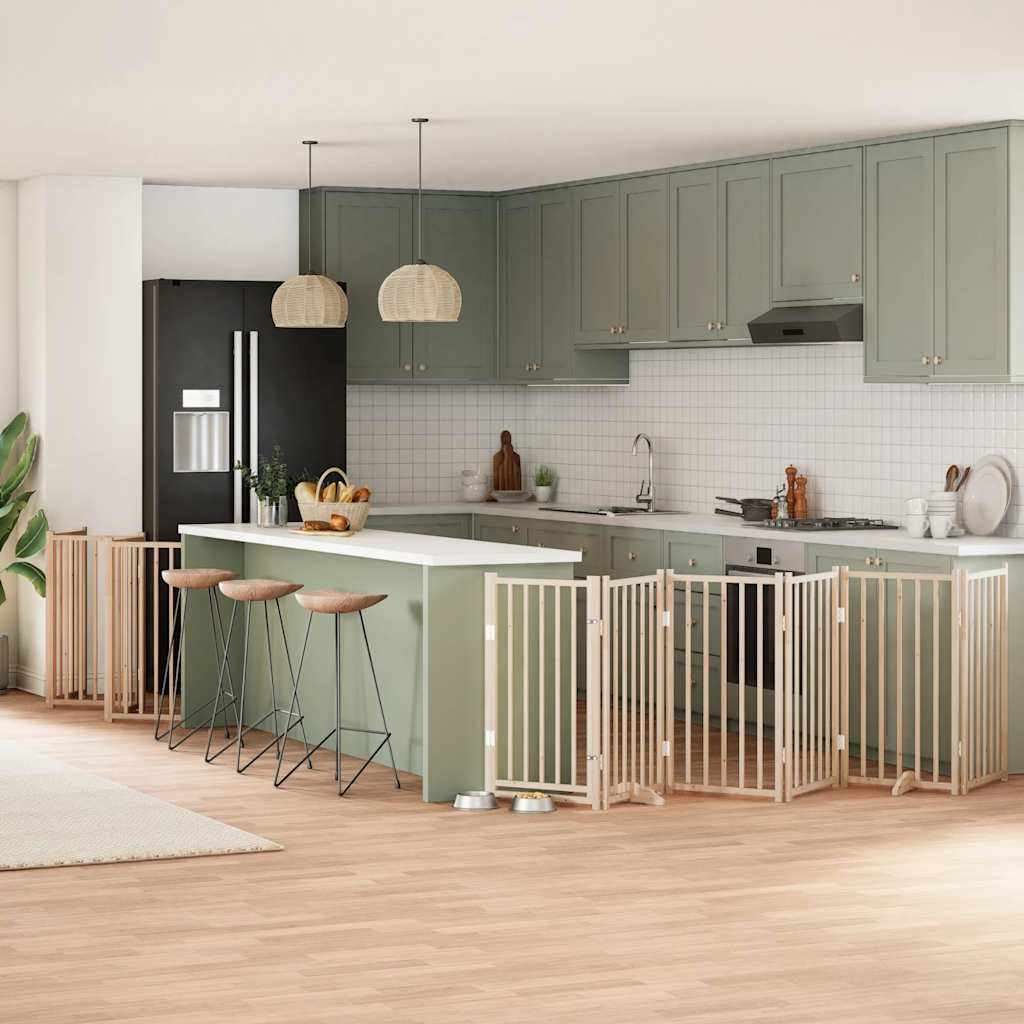 Mit diesem Hundetor kannst du dein Haustier in einem von dir bestimmten Aktivitätsbereich halten, um für dessen Sicherheit zu sorgen und nicht gestört zu werden. Langlebiges Material: Das Hundegitter besteht aus Pappelholz mit Lackierung auf Wasserbasis, was es nicht nur haltbar und langlebig macht, sondern auch eine einfache Reinigung ermöglicht. Benutzerfreundlich: Das Hundetor lässt sich ohne Bohren anbringen, sodass es nach der Demontage keine Schäden in deinem Zuhause hinterlässt. Du kannst das Hundegitter auch komplett zusammenfalten, um den Transport zu erleichtern und es platzsparend in einem Schrank oder an einem anderen Ort zu verstauen. Praktisches Design: Das Hundegitter verfügt über zwei stabile Stützbeine, die für Stabilität sorgen und einfache Anpassungen ermöglichen. Darüber hinaus ist es auch mit einer abschließbaren Tür ausgestattet, die sowohl dir als auch deinen Haustieren mehr Sicherheit und Bequemlichkeit bietet. Vielseitig einsetzbar: Dieses Hundegitter verhindert effektiv, dass deine Haustiere darüber springen und durchkommen. Daher eignet es sich perfekt, um deine Haustiere im Wohnzimmer, in der Küche, auf der Treppe und im Haus sicher zu halten.
