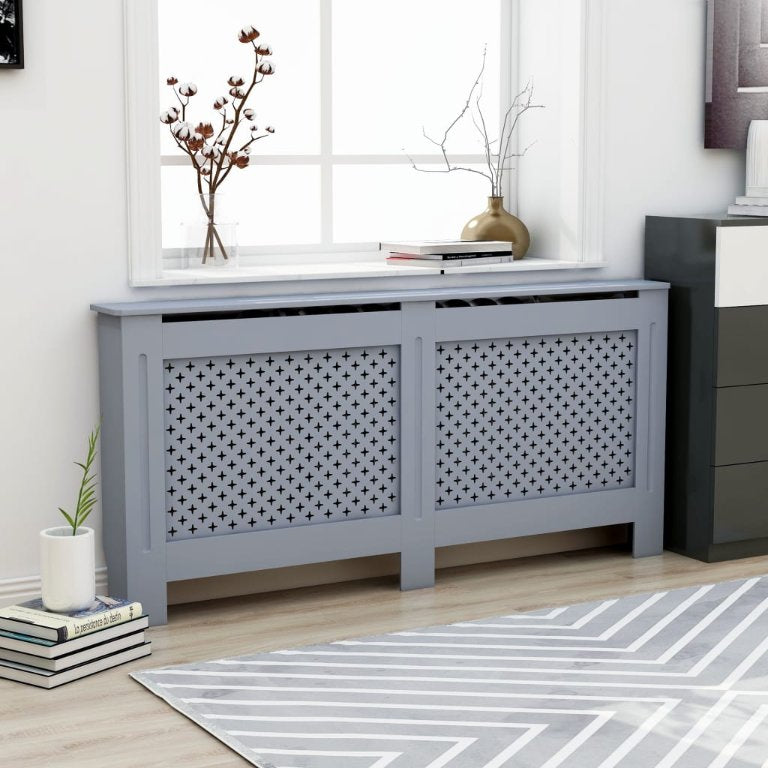 Diese Heizkörperabdeckung ist eine stilvolle und praktische Ergänzung für dein Wohnzimmer. Sie wurde entwickelt, um deinen Heizkörper dekorativ zu verkleiden und zusätzlichen Platz für Fotorahmen, Bücher, Ornamente usw. zu bieten. Die aus hochwertigem MDF gefertigte Heizkörperabdeckung ist robust und langlebig. Die Heizkörperverkleidung hat ein modernes, lattenförmiges Design, das zu jeder Einrichtung passt. Die Verkleidung ist einfach zu montieren.