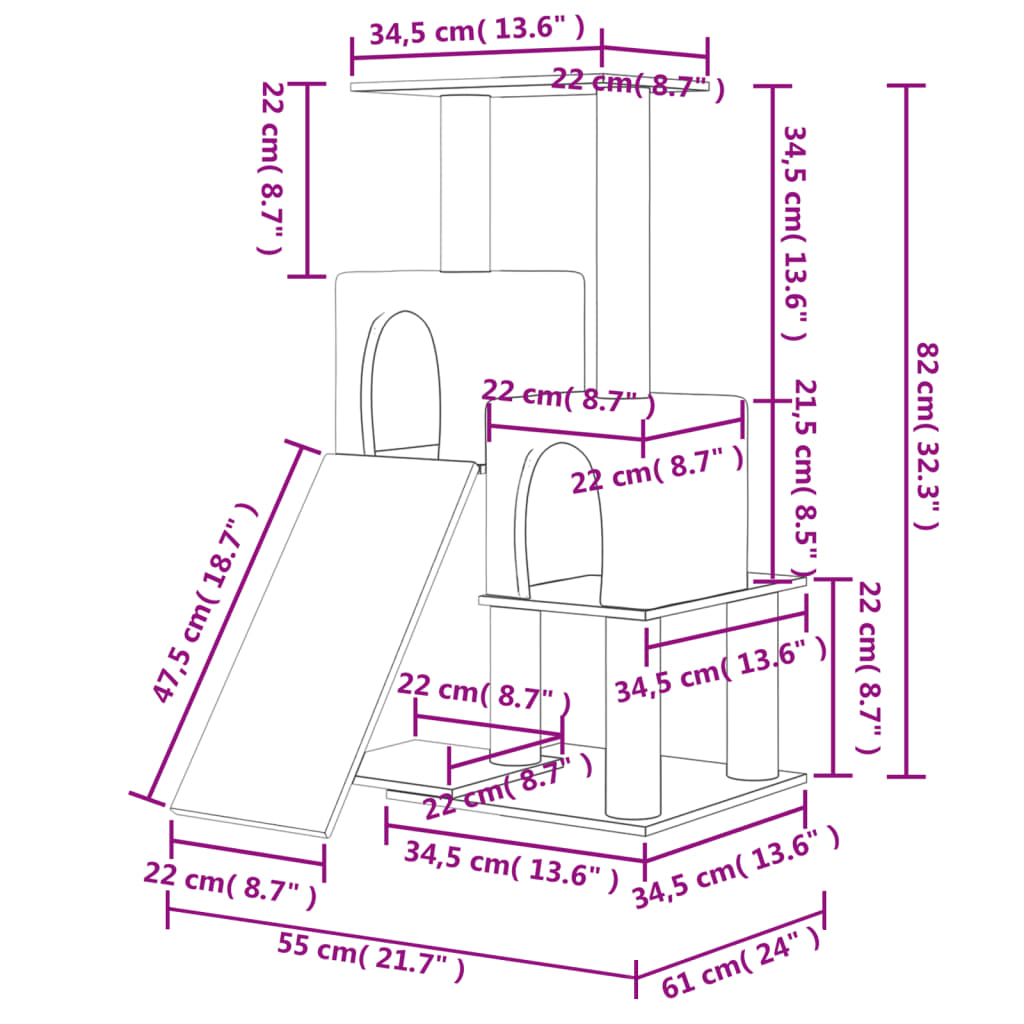 Dieser alles-in-einem-Kratzbaum bereitet deinen Katzen endlosen Spaß! Alles-in-einem-Katzenturm: Das mehrstufige Katzenmöbel besteht aus 2 Katzenhöhlen, einer Rampe sowie Liegeflächen und bietet deinen Katzen einen perfekten Platz zum Klettern, Sitzen, Krallenschärfen, Verstecken und Entspannen.Weicher Plüsch: Mit extra dickem und weichem Plüsch bezogen, ist der Kratzbaum gut belüftet, kratzfest, sehr bequem und warm.Säulen mit natürlichem Sisal: Die widerstandsfähigen und robusten Säulen sind mit natürlichem Sisal umwickelt und bieten deinen geliebten Katzen den perfekten Platz, um ihren Kratzinstinkte auszuleben, sodass Kratzern an deinen Möbeln verhindert werden.