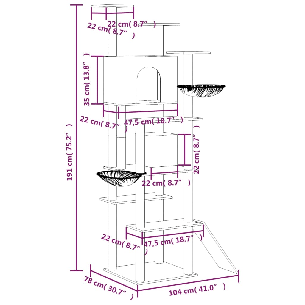 vidaXL Kratzbaum mit Sisal-Kratzsäulen Hellgrau 191 cm