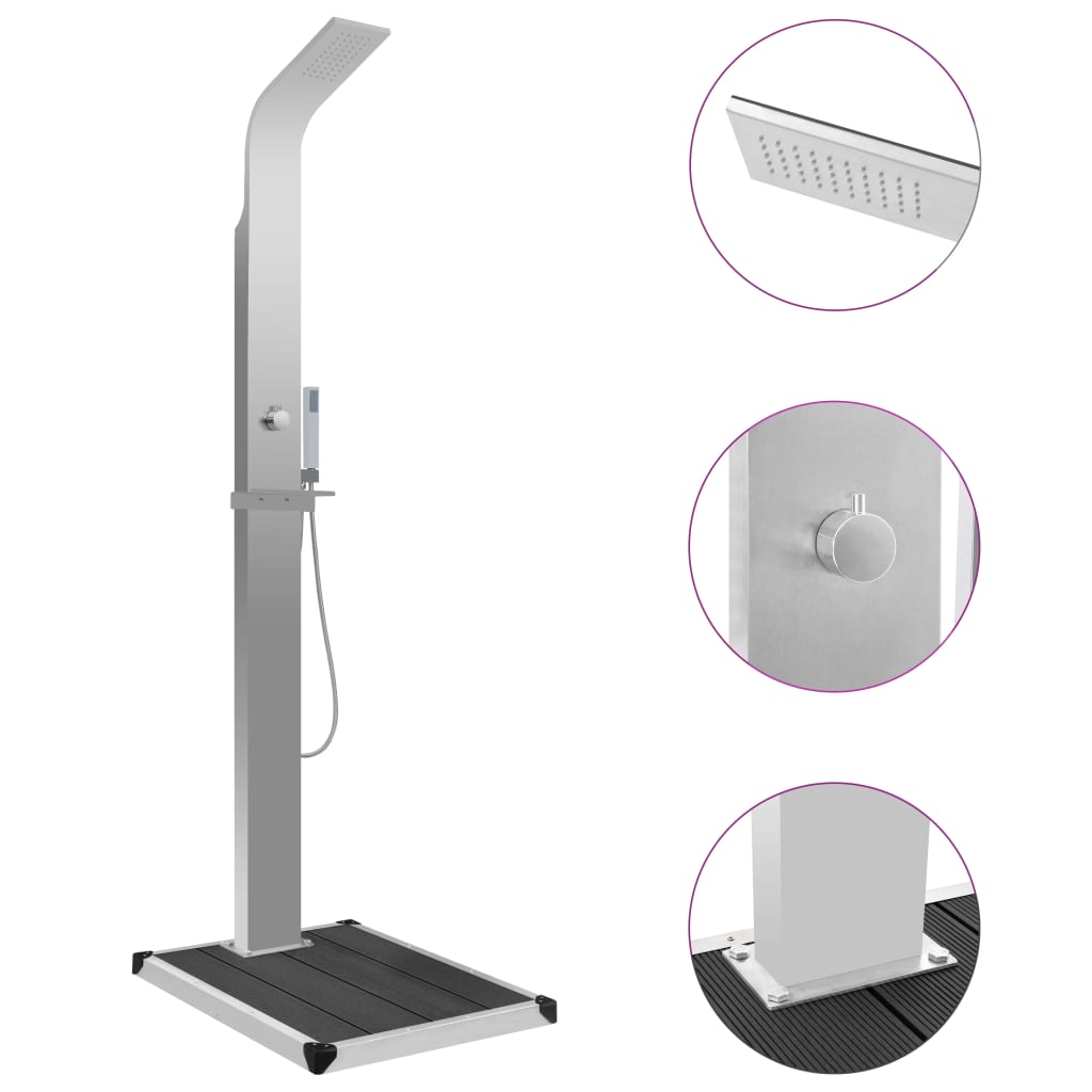 Dieses multifunktionale ghat ein stilvolles Design. In Kombination mit einer eleganten Duschwanne ist dies eine großartige Ergänzung für Ihren Pool und andere Außenbereiche. Die Duschsäule ist aus langlebigem, gebürstetem Edelstahl hergestellt und weist ein schönes, geschwungenes Design auf. Es hat eine Regendusche und einen Handbrausekopf, der einfach mit einem Knopf ausgewählt werden kann. Genießen Sie ein wirklich entspannendes Duscherlebnis und den modernen Stil dieses wunderschön gestalteten Duschpaneel-Systems! Diese Duschtasse bietet ein Höchstmaß an Hygiene, Langlebigkeit und Korrosionsbeständigkeit. Die Bodenplatte ist mit einem feuchten Tuch leicht zu reinigen. Zusätzlich sind die Befestigungslöcher für eine einfache Montage vorgebohrt. Das Duschpaneel-System ist einfach zu montieren. Montagezubehör ist ebenfalls im Lieferumfang enthalten.