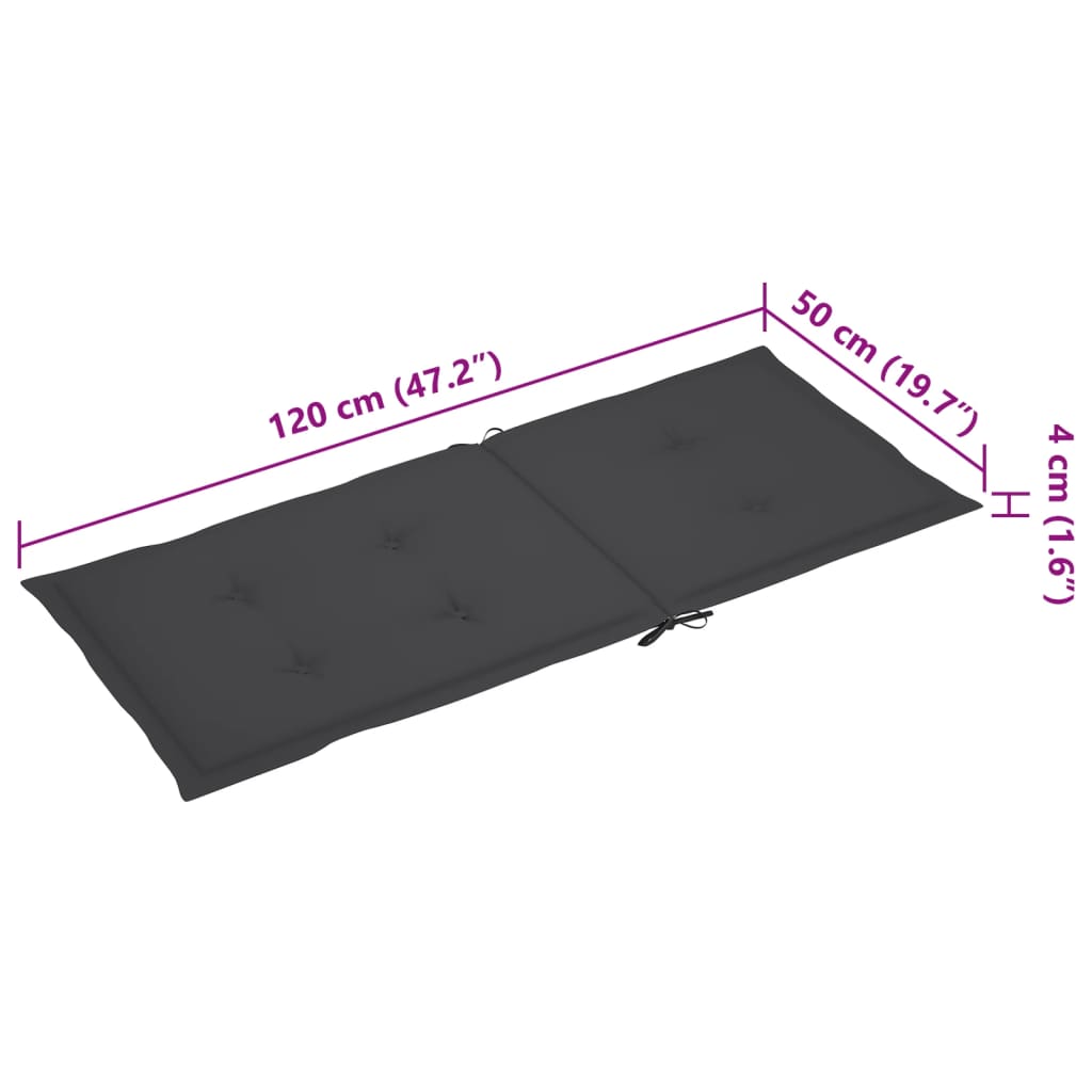 - Abmessungen der Auflage: 120 x 50 x 4 cm (B x T x H)