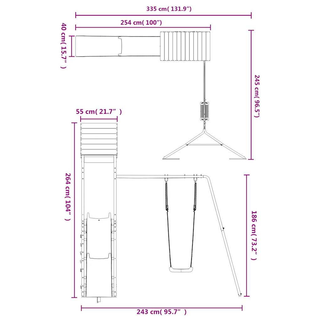 Möchtest du deinen Kindern ihren eigenen Spielplatz schenken? Dieser Spielplatz aus Holz ermöglicht fantasievolle Abenteuer im eigenen Garten! Massives Kiefernholz: Dieser Kletterturm ist aus Kiefern-Massivholz gefertigt. Kiefernholz ist ein wunderschönes Naturmaterial, das hat eine gerade Maserung und Aststellen aufweist. Diese verleihen dem Holz sein typisches, rustikales Aussehen.Robuster und stabiler Rahmen: Der Spielgerät-Rahmen aus Holz sorgt für Robustheit und Sicherheit. Außerdem sorgt das "A"-förmige Gestell der Kinderschaukel für Stabilität.Mehrere Spielmöglichkeiten: Der Spielturm verfügt über eine 90 cm hohe Plattform, eine Kletterwand, eine Wellenrutsche, eine Schaukel sowie einen Sandkasten. So können deine Kleinen auch ihre Freunde zum Mitspielen einladen.Durchdachtes Design: Die umlaufenden Holzgeländer gewährleisten die Sicherheit der Kinder beim Spielen. Zudem spendet das Holzdach an heißen Sommertagen Schatten.Unendlicher Spielspaß: Dieses lustige Spielgerät ist die perfekte Möglichkeit für deine Kinder und ihre Freunde, sich zu beschäftigen, mehr Spaß miteinander zu haben und Erinnerungen zu schaffen! Achtung:Nur für den HausgebrauchFür den AußenbereichNicht geeignet für Kinder unter 3 JahrenEmpfohlenes Benutzeralter: 3-8 Jahre Gut zu wissen:Um die Montage so einfach wie möglich zu machen, wird jedes Produkt mit einer Anleitung geliefert.
