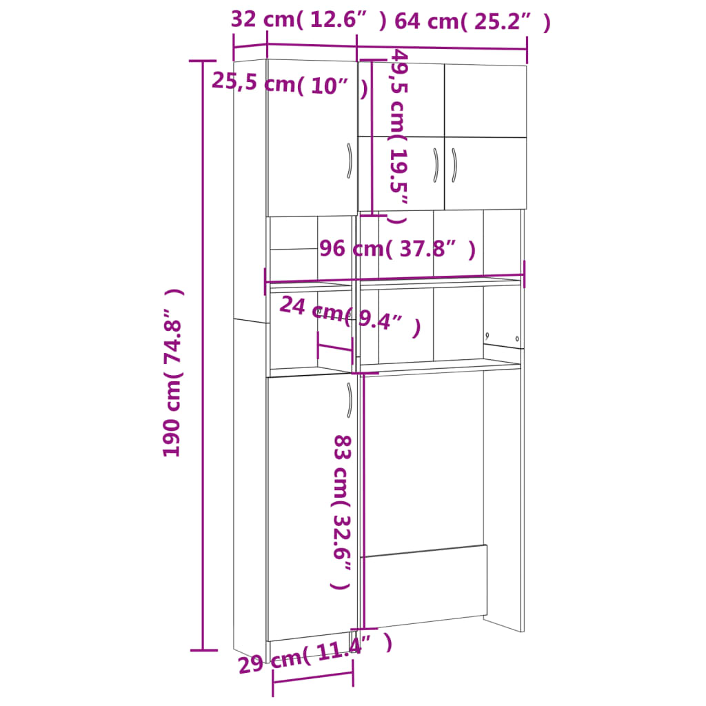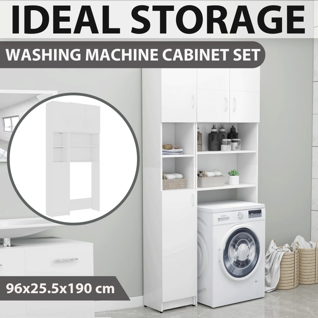 Mit diesem Waschmaschinenschrank-Set können Sie zusätzlichen Stauraum im Bad schaffen und dieses optimal nutzen. Die klaren Linien und das schlanke Design fügen sich perfekt in Ihr Badezimmer ein. Dieses schicke Waschmaschinenschrank-Set besteht aus zwei Waschmaschinenschränken, einem großen und einem kleinen. Das große hat 2 offene Fächer und 2 Türen, während das kleine mit 4 Regalen mit Türen und 2 offenen Regalen versehen ist. Es bietet verschiedene Aufbewahrungsmöglichkeiten und geräumigen Stauraum, um Ihre Wäsche, Reinigungsmittel, Toilettenartikel und andere Gegenstände gut organisiert und in Reichweite aufzubewahren. Die aus Holzwerkstoff hergestellten Badezimmerschränke sind robust und haltbar. Darüber hinaus lässt sich dieses Waschküchenmöbel leicht mit einem feuchten Tuch reinigen. Dieses Badezimmerschrankset ist mit dem mitgelieferten Montagematerial einfach zu montieren.