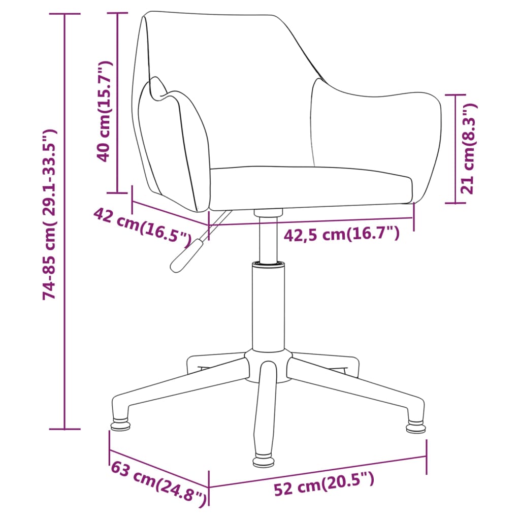 Mit seinem stilvollen Design ist dieser drehbare Bürostuhl sowohl eine praktische als auch eine moderne Bereicherung für Ihr Zuhause, Büro oder Wohnzimmer. Mit weichem Samt bezogen, ist dieser Bürostuhl sehr bequem und langlebig. Das Gestell aus Metall und Sperrholz bietet hohe Robustheit und Stabilität. Dank der Gasdruckfeder lässt sich der Drehstuhl nach Belieben in der Höhe verstellen. Darüber hinaus kann der Sitz um 360 Grad gedreht werden, was eine ausgezeichnete Flexibilität bietet.
