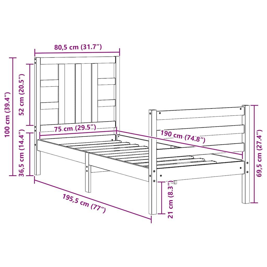 • Gesamtabmessungen des Bettes: 195,5 x 80,5 x 100 cm (L x B x H)