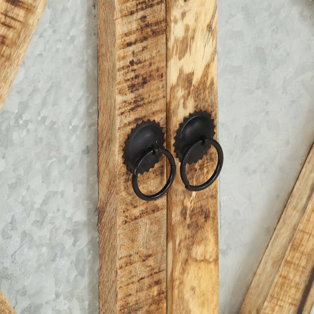 Diese Kommode ist eine zeitlose Ergänzung für jede Inneneinrichtung. Das Sideboard ist aus massivem Mangoholz gefertigt und ist daher äußerst stabil und langlebig. Mangoholz ist ein dichtes und robustes Hartholz, dessen Oberfläche schöne braune oder goldene Streifen und Konturen aufweist. Die stabile Oberseite eignet sich ideal zum Platzieren von dekorativen Gegenständen wie Vasen oder Topfpflanzen. Der Schrank bietet ausreichend Stauraum, um Ihre verschiedenen Gegenstände übersichtlich zu halten. Seine einzigartigen dekorativen Muster tragen zum modernen Charme des Sideboards bei. Verzinkte Stahlbeine sorgen für Stabilität und Langlebigkeit. Das Produkt ist leicht zu montieren. Wichtiger Hinweis: Farbe und Holzmaserung können von Artikel zu Artikel variieren, wodurch jedes Möbelstück einzigartig ist. Die Lieferung erfolgt in zufälliger Reihenfolge.