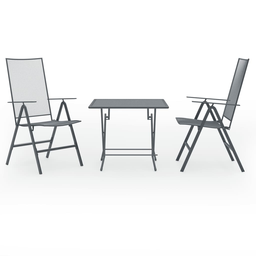 Diese Garten-Essgruppe hat ein stilvolles Netzdesign und bringt einen Hauch von zeitgenössischem Stil auf Ihre Terrasse, in Ihren Garten oder Ihr Esszimmer. Das Gartenmöbel-Set ist aus stabilem Stahl gefertigt, der mit einer E-Lackierung und Pulverbeschichtung versehen wurde. Der Esstisch und die Stühle sind extra stark, langlebig, wetter- und rostbeständig. Die Rückenlehne des Stuhls ist 6-fach verstellbar, um Ihren spezifischen Bedürfnissen gerecht zu werden. Dieses Set kann bei Nichtgebrauch platzsparend zusammengeklappt werden. Lehnen Sie sich zurück und genießen Sie eine Mahlzeit mit diesem stilvollen Ess-Set! Hinweis: Um die Lebensdauer Ihrer Gartenmöbel zu verlängern, empfehlen wir Ihnen, diese regelmäßig zu reinigen und bei Nichtgebrauch im Freien abzudecken.Reinigung: Verwenden Sie eine milde Seifenlösung.Lagerung: Wenn möglich, an einem kühlen, trockenen Ort im Innenbereich lagern. Wenn das Produkt im Freien gelagert wird, schützen Sie es mit einer wasserdichten Abdeckung. Wischen und trocknen Sie das überschüssige Wasser oder den Schnee nach Regen oder Schneefall von der ebenen Fläche. Sorgen Sie für eine ausreichende Luftzirkulation, um feuchtigkeitsbedingte Schäden zu vermeiden.