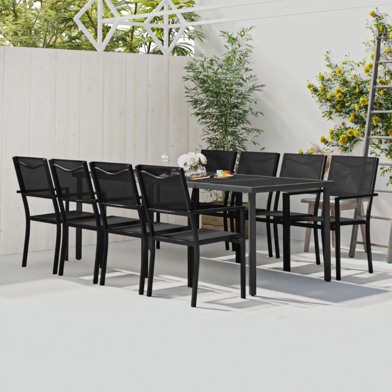 Mit ihrem stilvollen Design und dem robusten Stahlrahmen ist diese Essgruppe die perfekte Wahl für deinen Außenbereich. Die schlichte Eleganz dieser Essgarnitur macht jedes Abendessen zu etwas Besonderem. Dieses Gartenmöbelset verfügt über pulverbeschichtete Stahlrahmen, die dem Tisch und den Stühlen eine hohe Stabilität und Langlebigkeit verleihen. Die komfortablen Stühle sind mit robustem, pflegeleichtem und wasserfestem Textilene Gewebe bespannt. Hinweis: Um die Lebensdauer deiner Gartenmöbel zu verlängern, empfehlen wir dir, sie mit einer wasserdichten Abdeckung zu schützen.