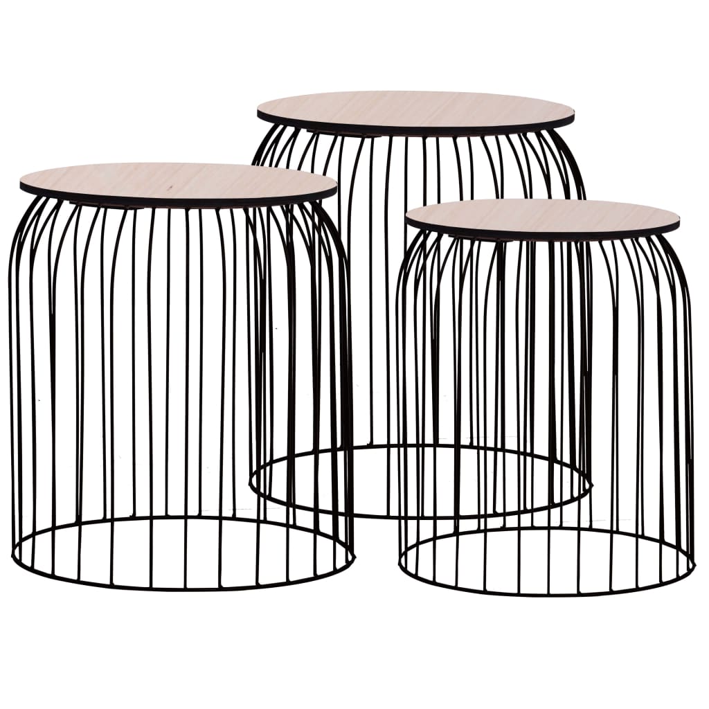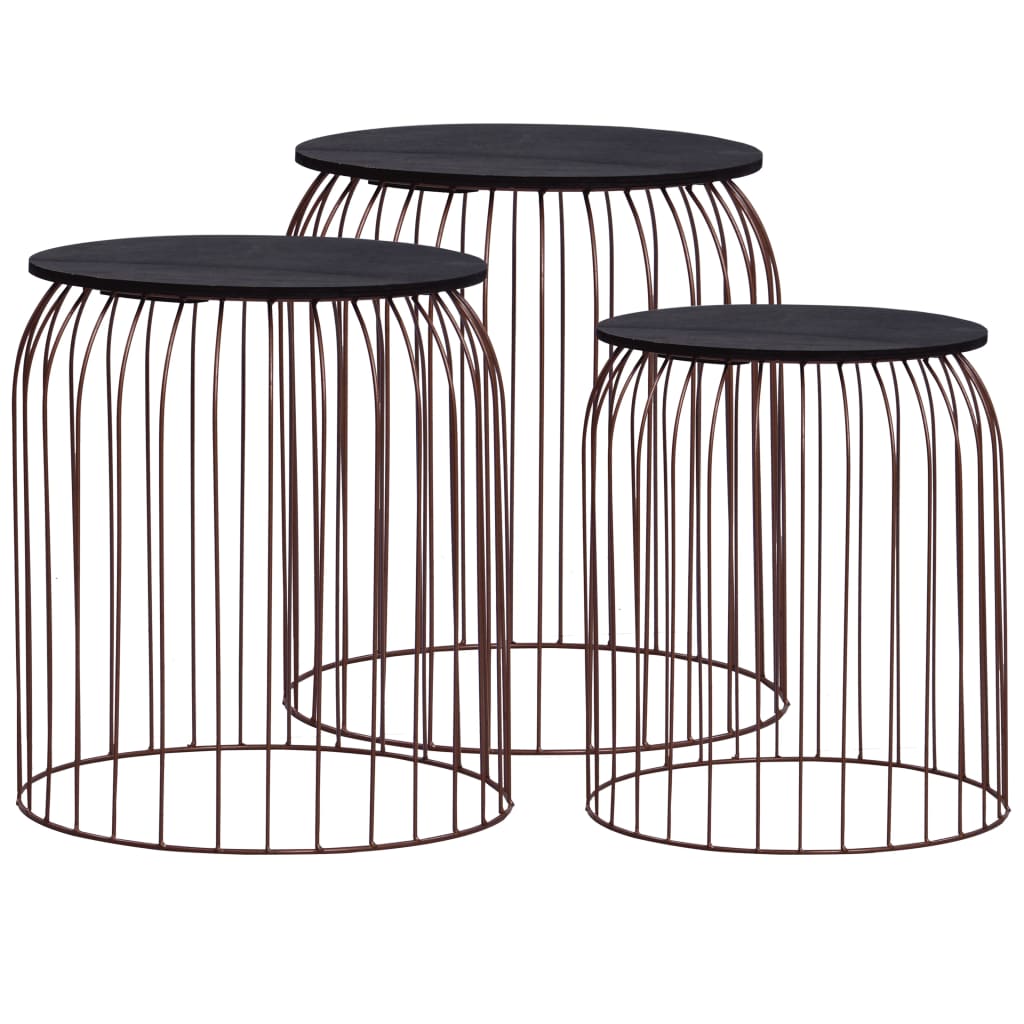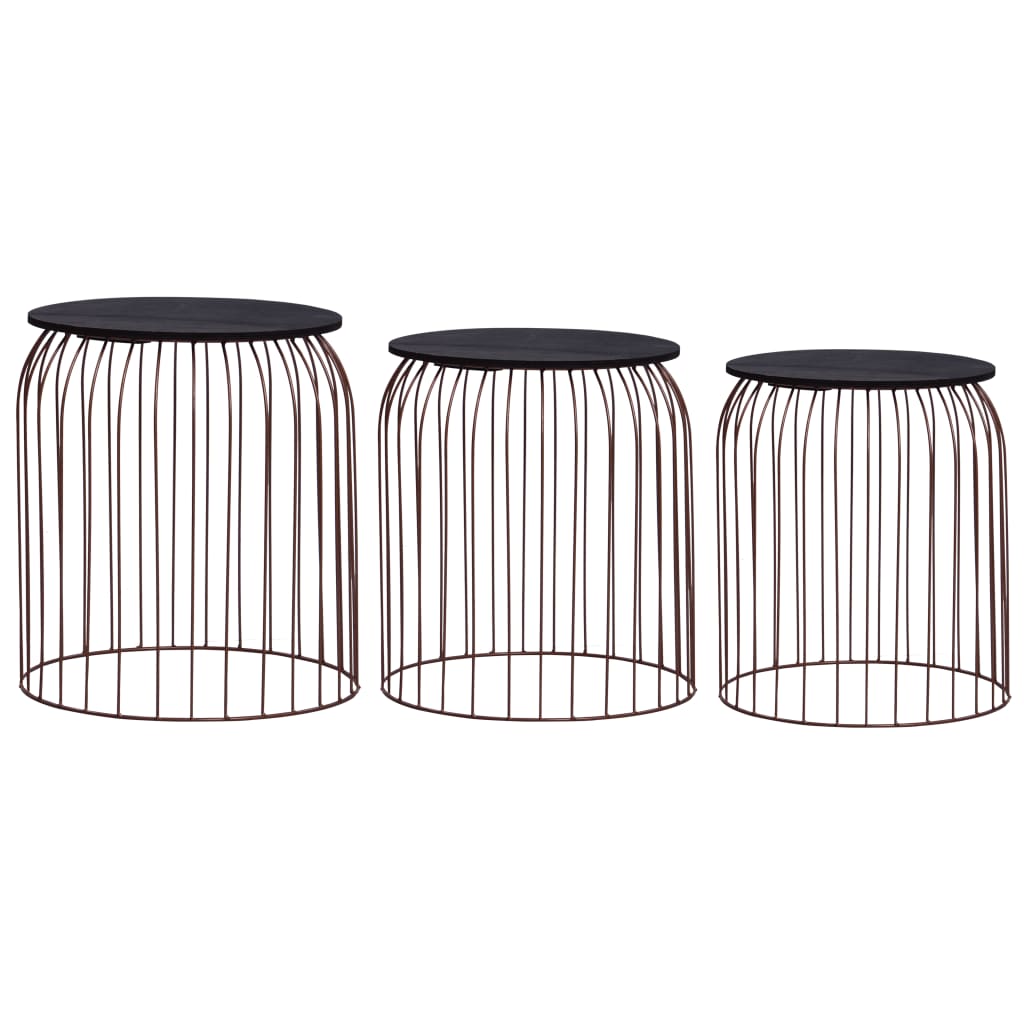 Dieses Set aus 3 Couchtischen strahlt einen Vintage-Charme aus und wird eine unverwechselbare Ergänzung zu Ihrer Wohnungseinrichtung sein. Sie können die Tische auch als Ablagekörbe, Ablagetische, Beistelltische usw. verwenden. Die Tischplatte aus Massivholz bietet eine glatte und stabile Oberfläche, auf der Sie Getränke, Vasen oder andere Dekorationsartikel platzieren können. Durch das Abnehmen der Tischplatte verwandeln Sie den Beistelltisch in einen Ablagekorb. Außerdem kann der kleinere Tisch platzsparend in den größeren gestellt werden. Der stabile, pulverbeschichtete Metallrahmen trägt zur robusten Konstruktion und zur industriellen Optik bei.