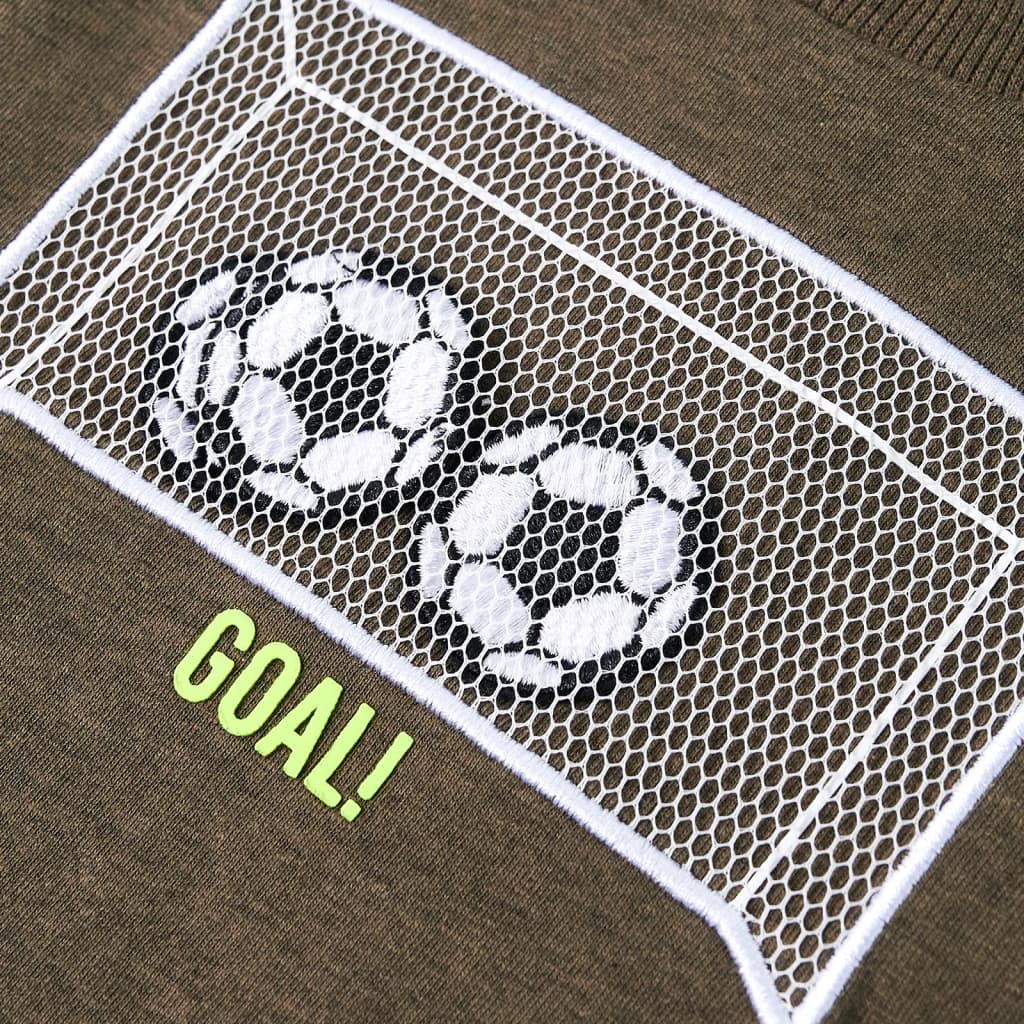 Unsere Bekleidungslinie umfasst erschwingliche, hochwertige und langlebige Alltagskleidung für Kinder im Alter von 1,5 bis 10 Jahren. Unser Sortiment umfasst Jacken, Pullover, Hemden und vieles mehr, die in verschiedenen Stilen, Größen und Farben erhältlich sind. Um dem hohen Qualitätsstandard auf dem Markt gerecht zu werden, verwenden wir hochwertige Materialien und fortschrittliche Fertigungstechniken. Dieses Kinder-T-Shirt hat lange Ärmel, einen Rundhalsausschnitt und eine gerade Passform. Das T-Shirt in Khaki-Melange ist mit einem Fußballtor bedruckt. Das Langarmshirt besteht zu 80 % aus Baumwolle und zu 20 % aus Viskose, das mit einer Silikon- und Enzym-Waschung behandelt wurde und sich daher sehr weich und angenehm anfühlt. Gut zu wissen: Die Größentabelle in der Abbildung enthält Abmessungen für Kinder im Alter von 1,5 bis 10 Jahren, die die Größe, Brust, Taille und Hüfte abdecken. So kannst du leicht die Größe finden, die für dein Kind geeignet ist.