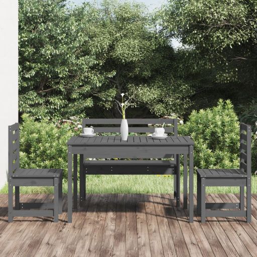 Diese klassische Gartengarnitur aus Holz eignet sich perfekt für den Außenbereich und wird der Mittelpunkt deines Gartens, deiner Terrasse oder deines Innenhofs sein. Massives Kiefernholz: Die Essgruppe ist aus massivem Kiefernholz gefertigt. Massives Kiefernholz ist ein wunderschönes Naturmaterial. Kiefernholz weist eine gerade Maserung auf und die Aststellen verleihen dem Material seine charakteristische, rustikale Optik.Praktische Tischplatte: Der Esstisch verfügt über eine robuste Tischplatte. Darauf finden Snacks, Getränke und Lieblingsdekorationen Platz.Komfortables Sitzerlebnis: Dank der Sitzflächen und Rückenlehen mit Latten-Design bieten die Gartenstühle höchsten Komfort.Breite Anwendung: Mit ihrem schlichten und zeitlosen Design ist diese Garten-Essgruppe für Balkone, Gärten, Terrassen usw. geeignet. Hinweis:Damit deine Gartenmöbel lange schön bleiben, empfehlen wir dir, sie mit einer wasserdichten Hülle zu schützen.