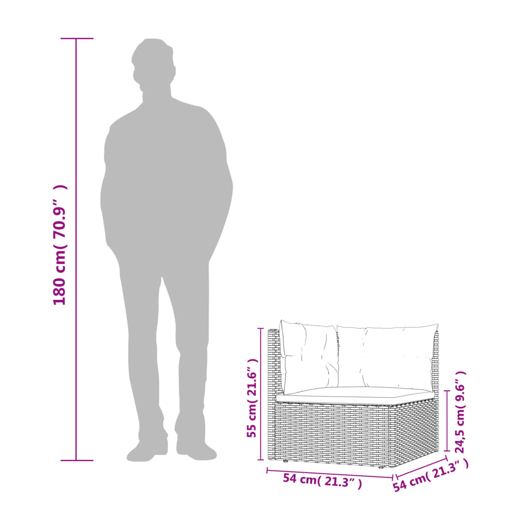 Mit seinem eleganten und modernen Design ist dieses trendige Garten-Lounge-Set eine großartige Wahl zum Entspannen in deinem Garten. Langlebiges Material: PE-Rattan, auch als Poly Rattan bekannt, ist witterungsbeständig und pflegeleicht. Seine Oberfläche weist lange Zeit eine ansprechende Optik auf. Es ist kostengünstiger als andere Materialien und bietet gleichzeitig hohe Qualität, Komfort und einen ästhetisches Look.Stabiler Rahmen: Stahl ist ein außergewöhnlich hartes und starkes Material. Er bietet Robustheit und Stabilität. Die Pulverbeschichtung bildet eine Schutzschicht gegen Abnutzung und Verschleiß.Modulares Design: Jedes Teil lässt sich leicht umstellen, um je nach Bedarf verschiedene Konfigurationen zu erstellen. In unserem Webshop sind auch andere modulare Elemente erhältlich, mit denen du dein eigenes Lounge-Set zusammenstellen kannst.Verstellbare Sitzfläche: Die Sitzfläche des Ecksofas kann in 3 Positionen verstellt werden, um eine bequemere Sitz- oder Liegeposition zu bieten.Bequemes Sitzerlebnis: Dank der dick gepolsterten Sitz- und Rückenkissen ist das Outdoor-Lounge-Set sehr bequem. Gut zu wissen:Um die Montage so einfach wie möglich zu machen, wird jedes Produkt mit einer Anleitung geliefert. Hinweis:Damit deine Gartenmöbel lange schön bleiben, empfehlen wir dir, sie mit einer wasserdichten Hülle zu schützen.