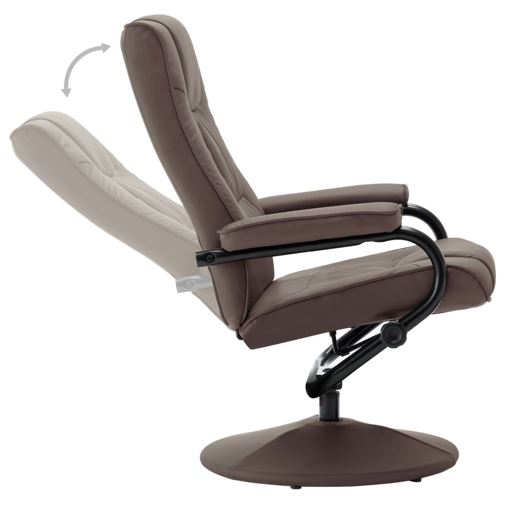 Entspannen Sie sich in diesem luxuriösen, verstellbaren Kunstleder-Fernsehsessel mit Fußhocker. Es bietet einen Hauch von Luxus und Glamour, damit Sie sich in Ihrem Wohnzimmer so richtig entspannen können. Mit Kunstleder bezogen und mit einem Fußhocker versehen, vereint dieser TV-Sessel Stil und Funktionalität. Mit einem robusten Gestell aus Holz und pulverbeschichtetem Stahl versehen, mit Schaumstoff hoher Dichte gepolstert und mit hochwertigem Kunstleder bezogen, bietet das Set höchsten Komfort. Die dick gepolsterte Sitzfläche und die weiche Rückenlehne sind äußerst bequem. Darüber hinaus lässt sich die Rückenlehne verstellen, während der Hocker Platz zum Hochlegen der Füße bietet. Das Sessel-Set aus Kunstleder bietet in jedem Raum einen gemütlichen Platz zum Lesen, Fernsehen oder einfach nur zum Entspannen.