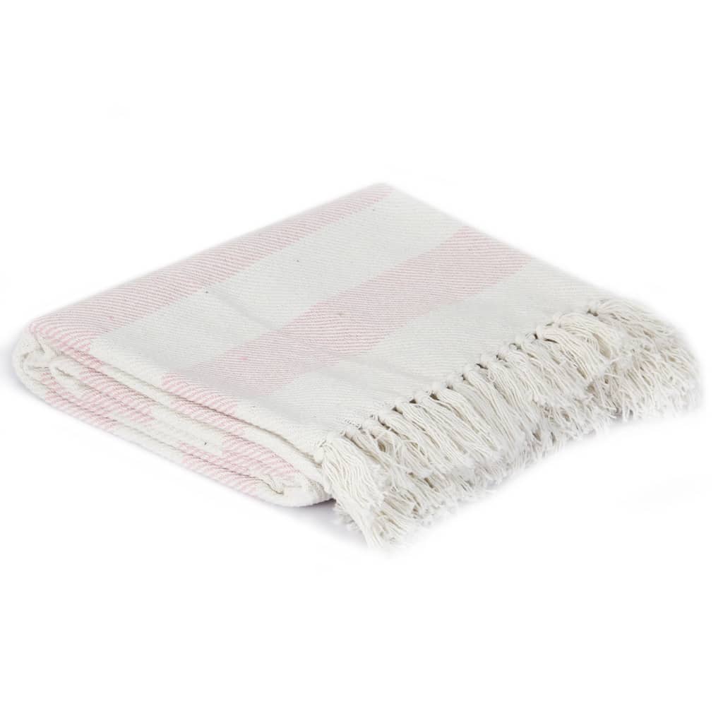 vidaXL Überwurf Baumwolle Streifen 125x150 cm Altrosa
