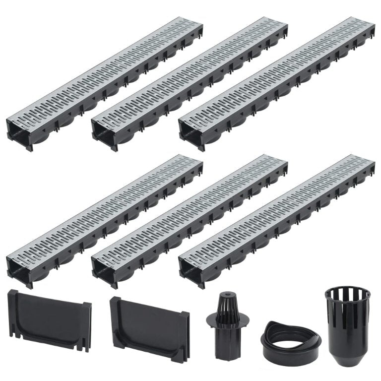 Dieses Komplett-Set besteht aus 3 Entwässerungskanälen mit einem Rost aus verzinktem Stahl, einem Filtersystem, einem Bodenauslassventil und zwei Abschlusskappen. Es eignet sich ideal zum Sammeln und Ableiten von überschüssigem Wasser aus Einfahrten, Terrassen und anderen Außenbereichen. Diese modularen Kanäle verfügen über ein einzigartiges Stecksystem, mit dem einer einfach mit dem nächsten verbunden werden kann. Diese Entwässerungskanäle sind aus hochwertigem Kunststoff mit Rosten aus verzinktem Stahl gefertigt worden, korrosionsbeständig, frost- und hitzebeständig und somit auf extreme Langlebigkeit ausgelegt. Dieses Set aus Entwässerungskanälen passt zu Kanälen oder Abflussrohren mit einem Durchmesser von 10 cm.