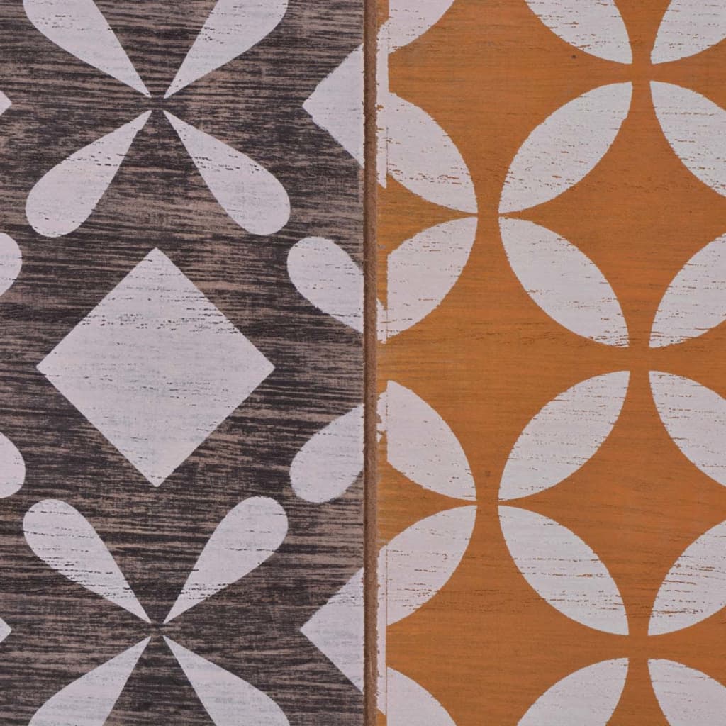 Dieser Konsolentisch hat ein dezentes, aber stilvolles Design mit eleganten dekorativen Mustern in verschiedenen Farben, und kann als Beistelltisch, Telefonständer, Sideboard, Highboard etc. verwendet werden. Dieser Beistelltisch im Retro-Design wird eine praktische sowie hochdekorative Ergänzung zu Ihrem Haus sein. Die große Tischplatte eignet sich hervorragend zum Ausstellen von dekorativen Objekten, Fotorahmen oder sogar kleinen Topfpflanzen. Dank dem qualitativ hochwertigen MDF-Material und den stabilen Stahlstiftbeinen ist dieser Konsolentisch sehr robust und langlebig. Die Montage ist sehr einfach.