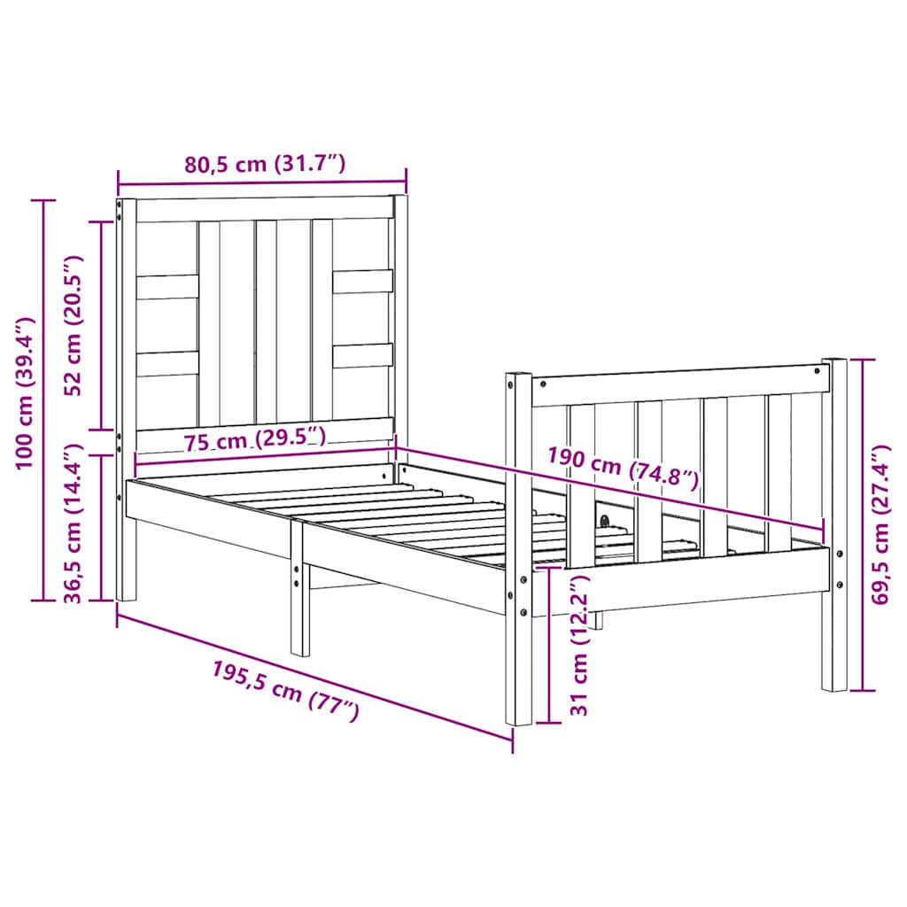- Gesamtabmessungen des Bettes: 195,5 x 80,5 x 100 cm (L x B x H)