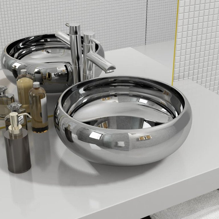 Dieses runde Waschbecken aus hochwertiger Keramik ist ein stilvolles Zubehör für jedes Badezimmer. Seine glasierte, glänzende Oberfläche überzeugt mit einem modernen, eleganten Design. Dieses kunstvolle Keramikwaschbecken ist mehr als nur ein praktischer Begleiter bei der täglichen Badezimmer-Routine! Es ist auch eine Zierde für Ihre Zuhause. Mit seiner eleganten, zeitlosen Gestaltung fügt es sich harmonisch in jeden Einrichtungsstil ein. Darüber hinaus ist es einfach zu installieren. Die Abflussöffnung hat einen Durchmesser von 4,5 cm. Bitte beachten Sie, dass der Wasserhahn und die Ablaufgarnitur nicht im Lieferumfang enthalten sind.